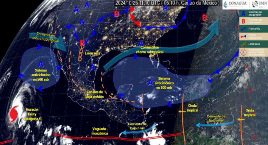 Oaxaca, México; 25 ocubre 2024.- La Coordinación Estatal de Protección Civil y Gestión de Riesgos (CEPCyGR) informa que para este viernes se prevén algunas lluvias con chubascos aislados sobre las regiones de la Cuenca del Papaloapan, Sierra de Juárez y Sierra de Flores Magón, así como probables precipitaciones ligeras en las demás regiones durante la tarde-noche.