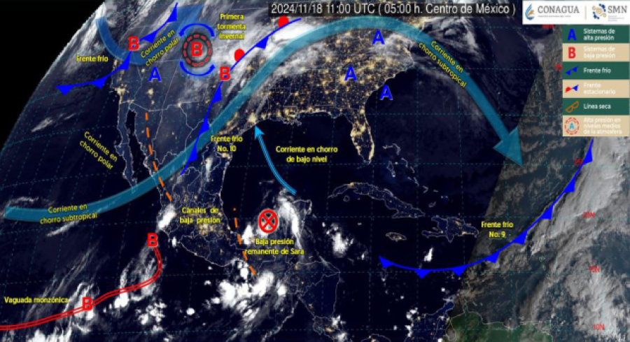 De acuerdo con el pronóstico del tiempo emitido por la Comisión Nacional del Agua (Conagua), estos remanentes siguen en tierra combinándose con las pulsaciones de humedad de la vaguada monzónica (un cinturón de inestabilidad atmosférica), favoreciendo estas condiciones