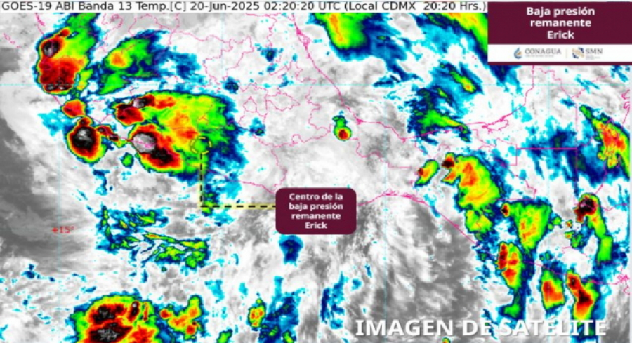 Oaxaca, México. 20 junio 2025.- El sistema tropical “Erick” se ha debilitado y ahora se clasifica como una baja presión remanente sobre el estado de Guerrero, reportó el Consejo Estatal de Protección Civil.