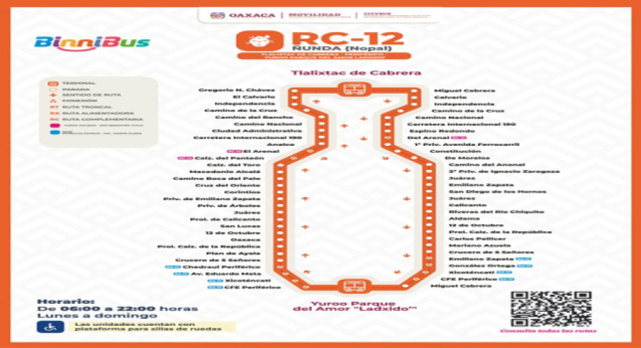 Oaxaca, México. 3 octubre 2025.- La ruta conocida como RC-03 cambia, a partir de este 3 de octubre, su nomenclatura y alcance, convirtiéndose en RC-12 Ñunda, que en lengua ixcateca significa Nopal, la cual unirá Tlalixtac de Cabrera con Yuroo Parque del Amor “Laxidó”.