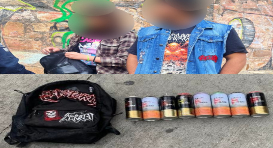 A las dos personas, un hombre y una mujer, que resultaron ser menores de edad, ya que ambos cuentan con 16 años, se les logró asegurar una mochila con diversos botes de pintura en aerosol.