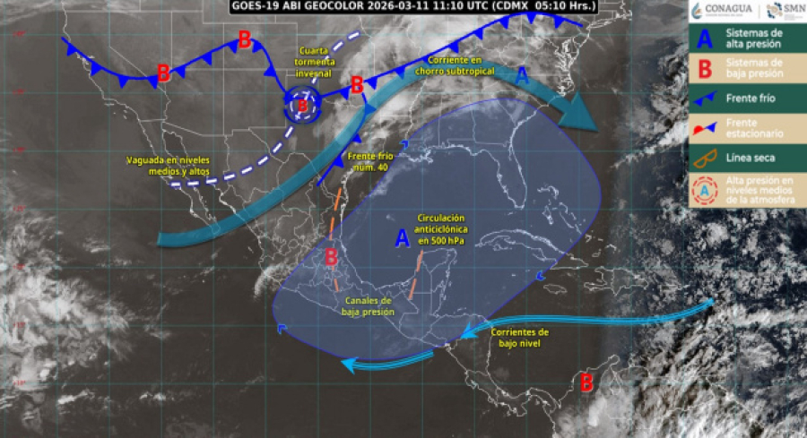 Finalmente, se mantiene en vigilancia el frente frío número 40, que actualmente se extiende sobre el norte de la República Mexicana y se pronostica que sea reforzado por nuevas aportaciones de aire polar. Este sistema podría afectar al estado con viento, lluvias, oleaje elevado y descenso de temperatura a partir del jueves y durante el viernes.