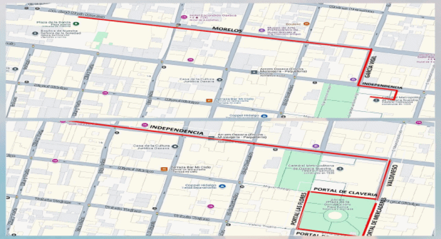 Esta actividad, única en todo el país, iniciará a partir de las 22:15 horas desde avenida Independencia esquina con la calle Mier y Terán, avanzará hasta llegar a la calle Doctor Aurelio Valdivieso, para integrarse al Portal de Clavería y recorrer los portales Las Flores, del Palacio y Mercaderes, para terminar en la esquina de las calles Miguel Hidalgo y Doctor Aurelio Valdivieso.