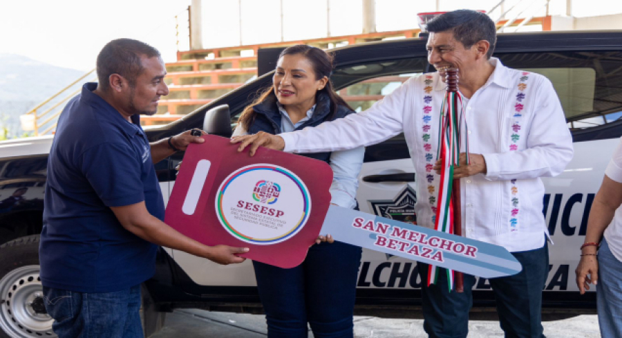 San Melchor Betaza, Oaxaca; 03 noviembre 2024.- Para fortalecer la estrategia de seguridad y la prevención de delitos, el Gobernador Salomón Jara Cruz entregó una patrulla doble cabina al municipio de San Melchor Betaza, perteneciente a la región Sierra de Juárez.