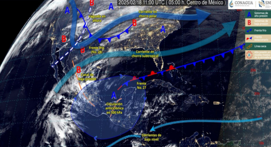 En tanto, el frente frío número 27 modificará sus características térmicas al internarse sobre el Mar Caribe, dejando de afectar al país.