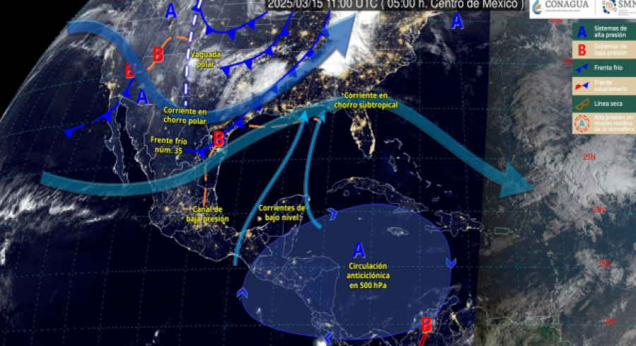 Por otro lado, se continúa con el monitoreo del frente frío número 35 que recorrerá lentamente el noreste de México.