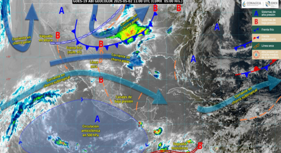 También, los vientos serán mayormente ligeros a moderados del suroeste con algunas rachas al paso de la lluvia. Continuará el mar de fondo con oleaje elevado y fuertes corrientes de resaca, desde San Mateo del Mar hasta Santiago Pinotepa Nacional, con mayor presencia en las costas del Golfo de Tehuantepec, aunado a bruma densa durante el día.