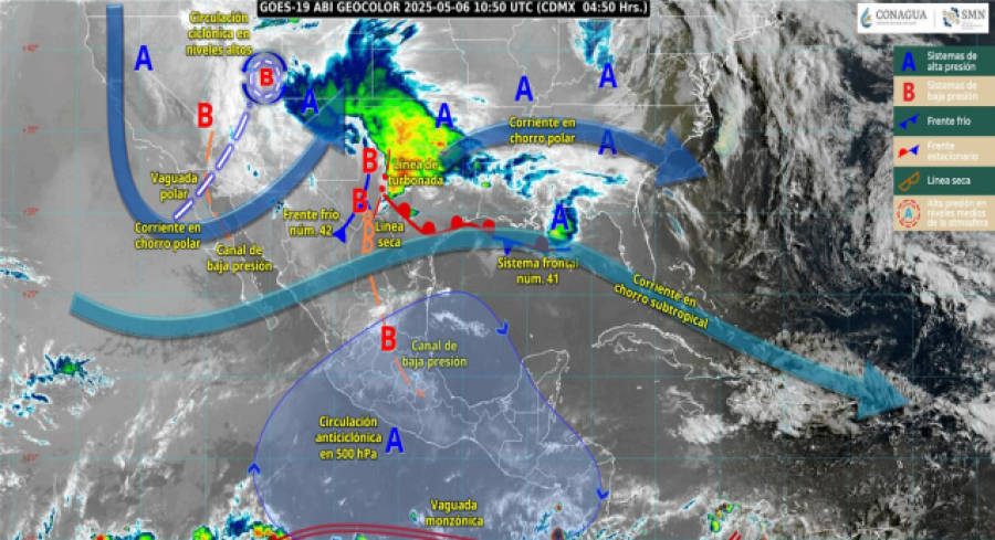 De acuerdo con el pronóstico del tiempo emitido por la Comisión Nacional del Agua (Conagua), habrá presencia de chubascos y tormentas aisladas en horas de la tarde-noche. En tanto, el frente frío número 42 se desplazará sobre el noreste del país, por lo que se mantiene en vigilancia.