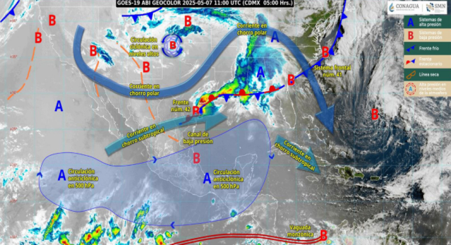 Asimismo, a partir de este jueves es muy probable que finalice la ola de calor, en especial para la porción norte del estado, debido al acercamiento del frente frío número 42, que permitirá un refrescamiento térmico y viento del norte moderado a fuerte en el oriente del Istmo y Golfo de Tehuantepec.