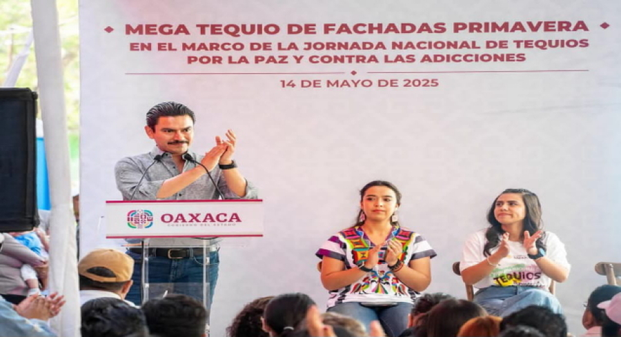 Oaxaca, México. 14 mayo 2025.- Este miércoles, el presidente municipal Ray Chagoya, junto al gobernador Salomón Jara Cruz, encabezó el Mega Tequio “Fachadas Primavera” en San Juan Chapultepec, como parte de la Jornada Nacional de Tequios por la Paz y Contra las Adicciones, convocada por la presidenta de México, Claudia Sheinbaum Pardo.