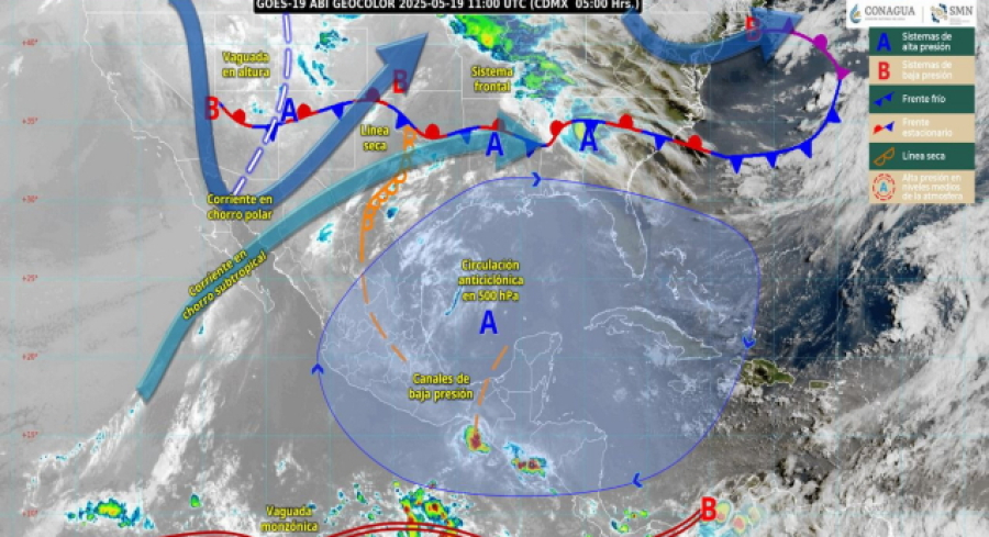 Oaxaca, México.19 mayo 2025.- La Coordinación Estatal de Protección Civil y Gestión de Riesgos (CEPCyGR) informa que, este lunes, la ola de calor estará fragmentada y limitada en algunos municipios del oeste de la entidad, además de cielo despejado durante la mañana y medio nublado por la tarde; bajo la influencia del sistema anticiclónico que mantiene estabilidad atmosférica.
