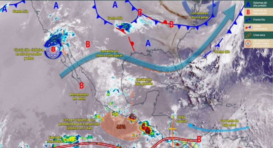 Lo anterior, debido a que continúa el arrastre de humedad de la vaguada monzónica hacia el interior del estado, manteniendo inestabilidad, especialmente durante la tarde y noche; apoyado por un canal de baja presión sobre el sureste de México, desencadenando nubosidad baja y desarrollo vertical en gran parte del estado.