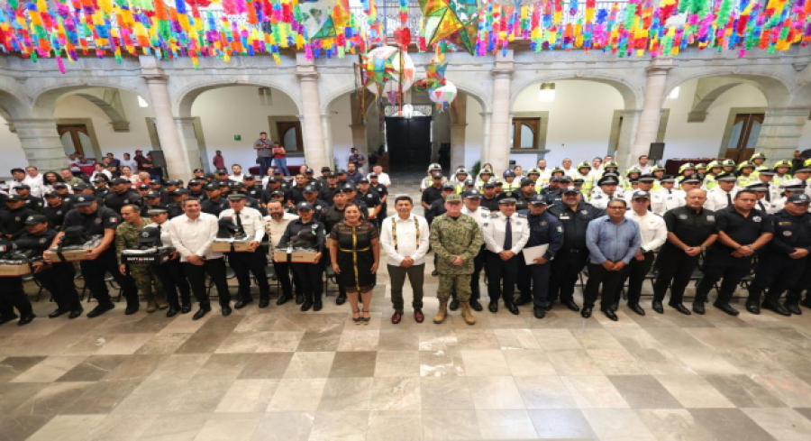 El Mandatario estatal señaló que esta dotación se suma al fortalecimiento del Sistema de Pensiones para las Fuerzas de Seguridad impulsado por el Gobierno de Oaxaca, lo cual brinda una mayor certeza económica a las y los policías estatales.