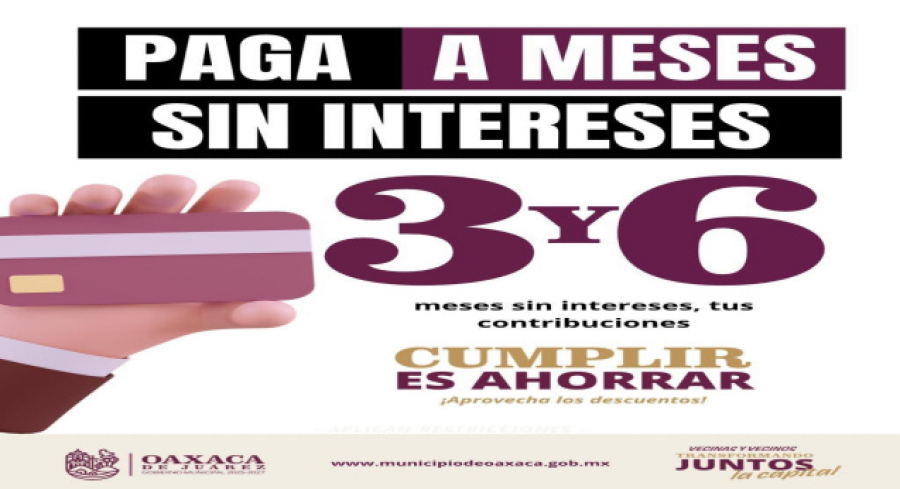 Además, las y los contribuyentes pueden pagar sus contribuciones a 3 y 6 meses sin intereses, mediante tarjetas participantes, lo que permite ponerse al corriente sin afectar su economía familiar.
