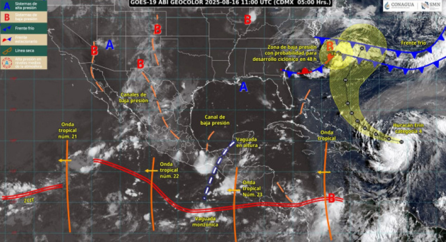 Todos estos efectos son derivados de la entrada de humedad del Océano Pacífico y Golfo de México, en combinación con una baja superior