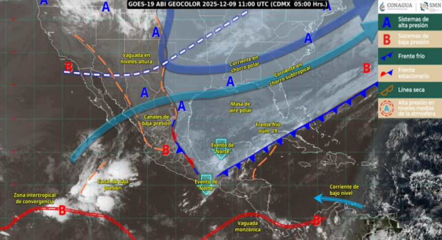 Oaxaca, México. 9 diciembre 2025.- La Coordinación Estatal de Protección Civil y Gestión de Riesgos informa que continuarán las lluvias de intensidad variable, con mayor énfasis en el norte del estado.