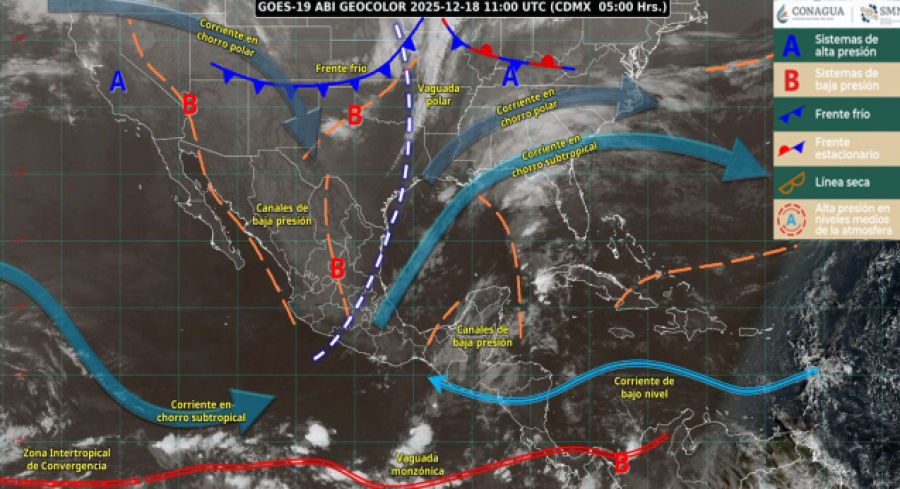 Se vigila un frente frío débil que podría generar un ligero reforzamiento de aire frío en la entidad, a partir de este viernes