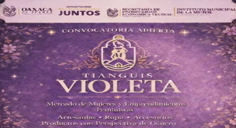 Oaxaca, México. 26 de febrero de 2026.- El Instituto Municipal de la Mujer, en coordinación con la Secretaría de Prosperidad Económica Vecinal del Municipio de Oaxaca de Juárez, emite la convocatoria para participar en la Segunda Edición del Tianguis Violeta, dirigida a mujeres emprendedoras de la capital.