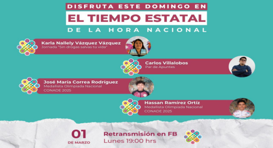 El episodio también estará disponible a partir del lunes 2 de marzo a las 19:00 horas a través de la página oficial de Facebook Live de El Tiempo Estatal de la Hora Nacional Oaxaca.