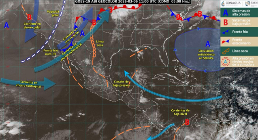 Lo anterior se debe a la presencia de un débil canal de baja presión sobre el sureste de México, en combinación con el ingreso de humedad proveniente del océano Pacífico y el Golfo de México.