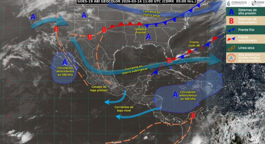 Asimismo, los vientos rolarán hacia el sur y sureste, lo que favorecerá una mayor sensación térmica asociada a la alta radiación solar durante la primera mitad del día. También se podrían presentar tolvaneras por la tarde, especialmente en zonas planas.