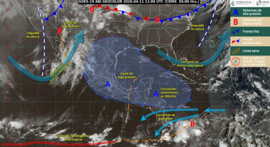 Estas condiciones son ocasionadas por la presencia de un canal de baja presión en el interior del país, en interacción con la afluencia de humedad proveniente del Océano Pacífico.