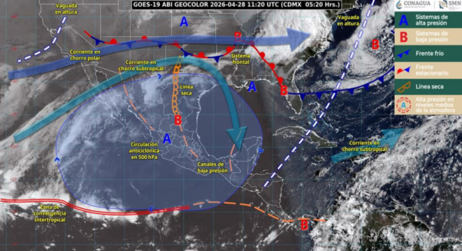 Oaxaca, México. 28 de abril de 2026.– La Coordinación Estatal de Protección Civil y Gestión de Riesgos (CEPCyGR) informa que un anticiclón en niveles medios de la atmósfera mantendrá una ola de calor sobre gran parte del estado, generando un ambiente caluroso.